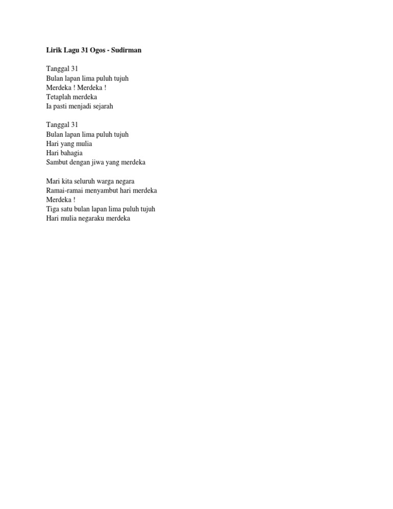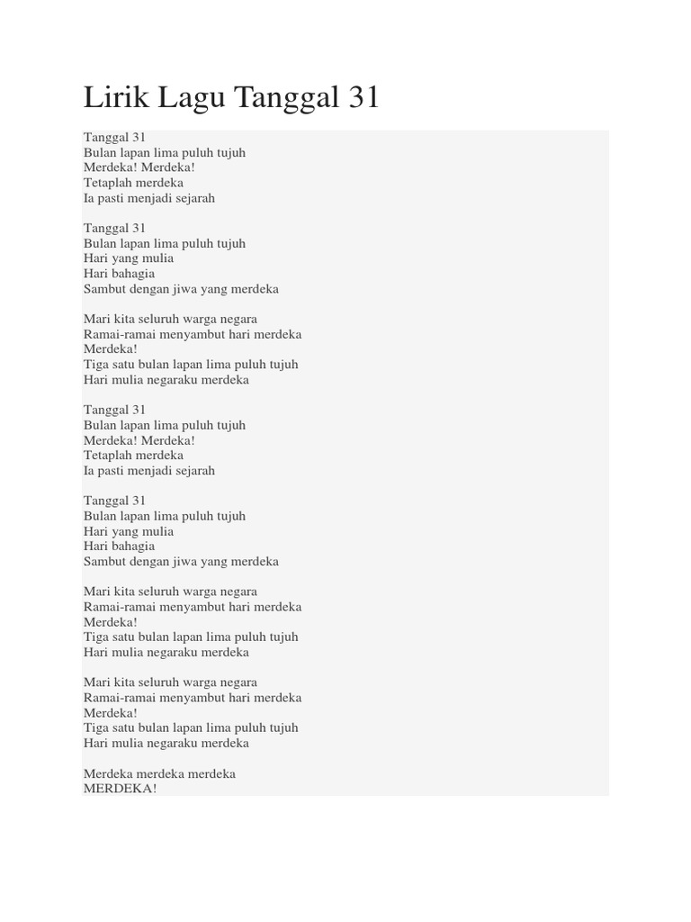 Lirik Lagu Tanggal 31 Ogos Pdf